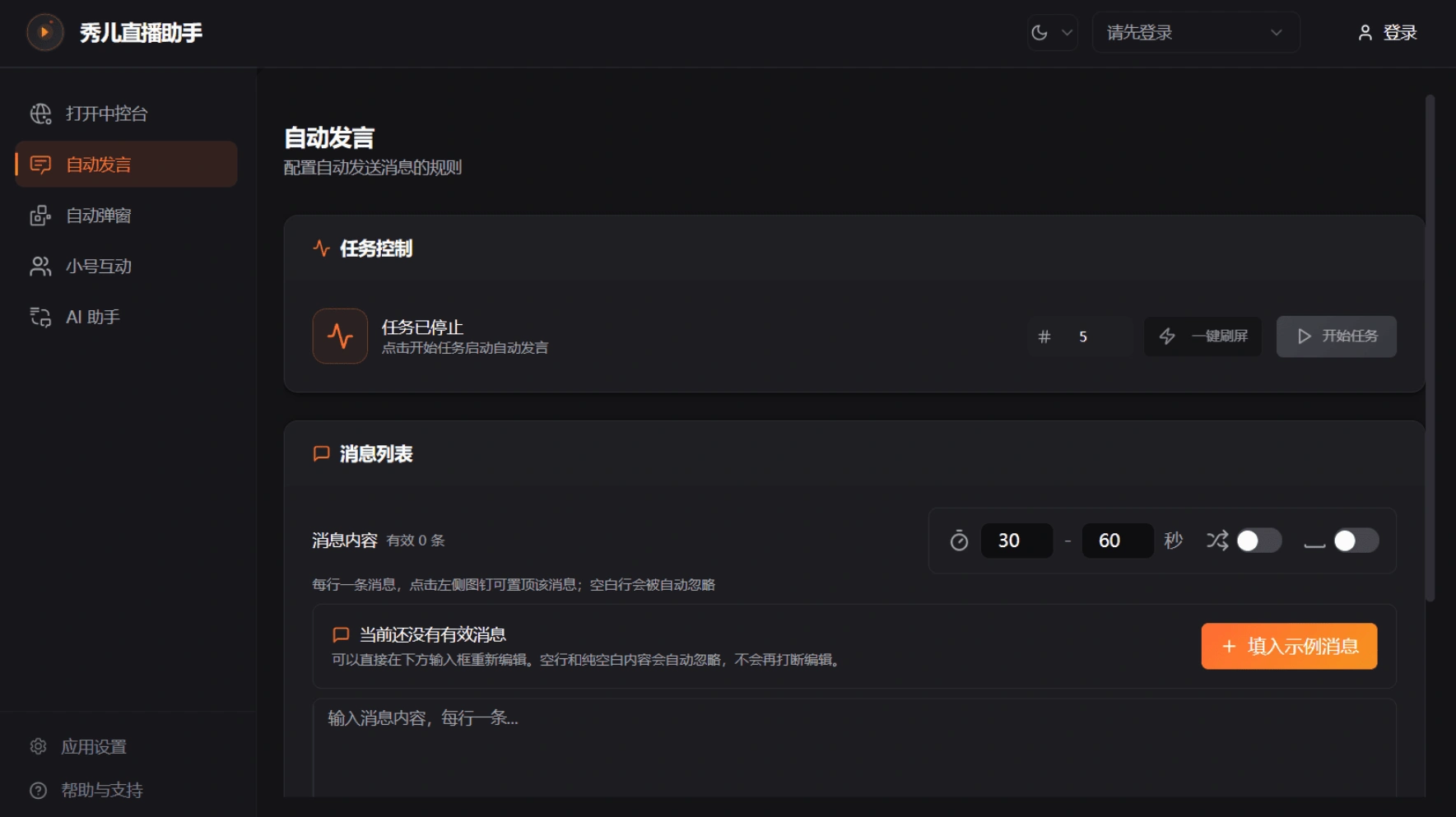 - AI 自动回复实时监听:捕捉直播间评论互动,自动生成回复内容